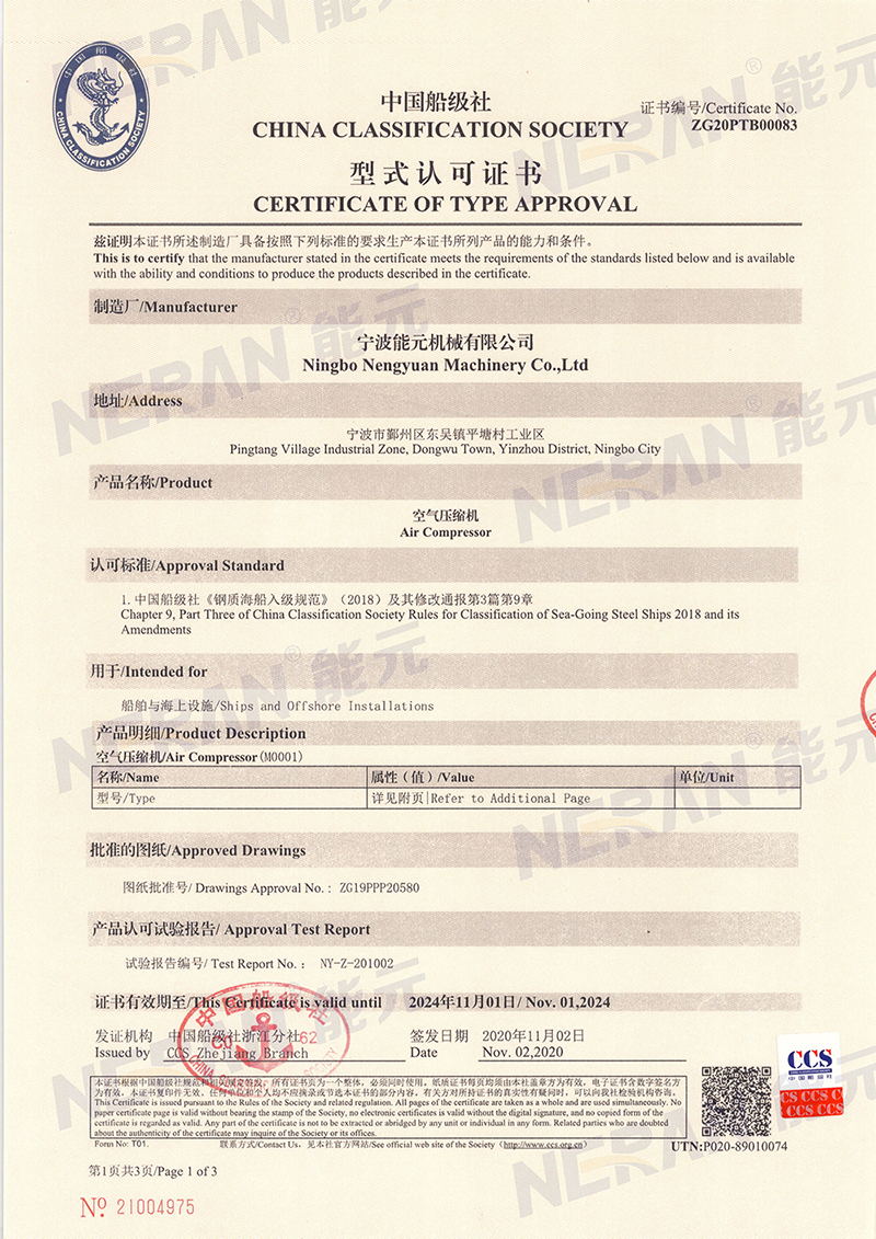 3、獲得船級(jí)社工廠型式認(rèn)可,提供船級(jí)社認(rèn)證證書(shū);
